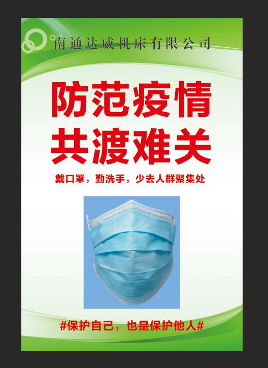 2月10日清晨7點(diǎn)剛過,達(dá)威老員工老吳早早地趕到了公司。“公司上班時(shí)間是7點(diǎn)半。這不復(fù)工第一天嘛!早一點(diǎn)來搞搞衛(wèi)生、做好消毒防疫工作,迎接大家復(fù)工!”老吳是南通達(dá)威機(jī)床有限公司的辦公室主任,辦公地點(diǎn)位于江蘇省南通市海安市李堡鎮(zhèn)工業(yè)園。